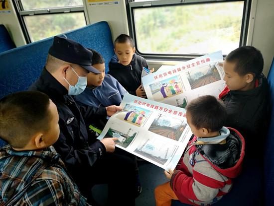 在列车运行途中,民警还给学生们讲安全故事、辅导作业,直至将他们送到目的站,让学生的家人将孩子们接走。15 年来,通道站警务区民警换了一岔又一岔,但护送学生的这根 “ 接力棒 ” 始终沒有断线,无论寒冬酷暑,每周五学校放学后,通道站警务区民警如同 “ 临时家长 ” 一般,都会来学校接人,一路关怀,精心守护着一批批侗乡学子们。