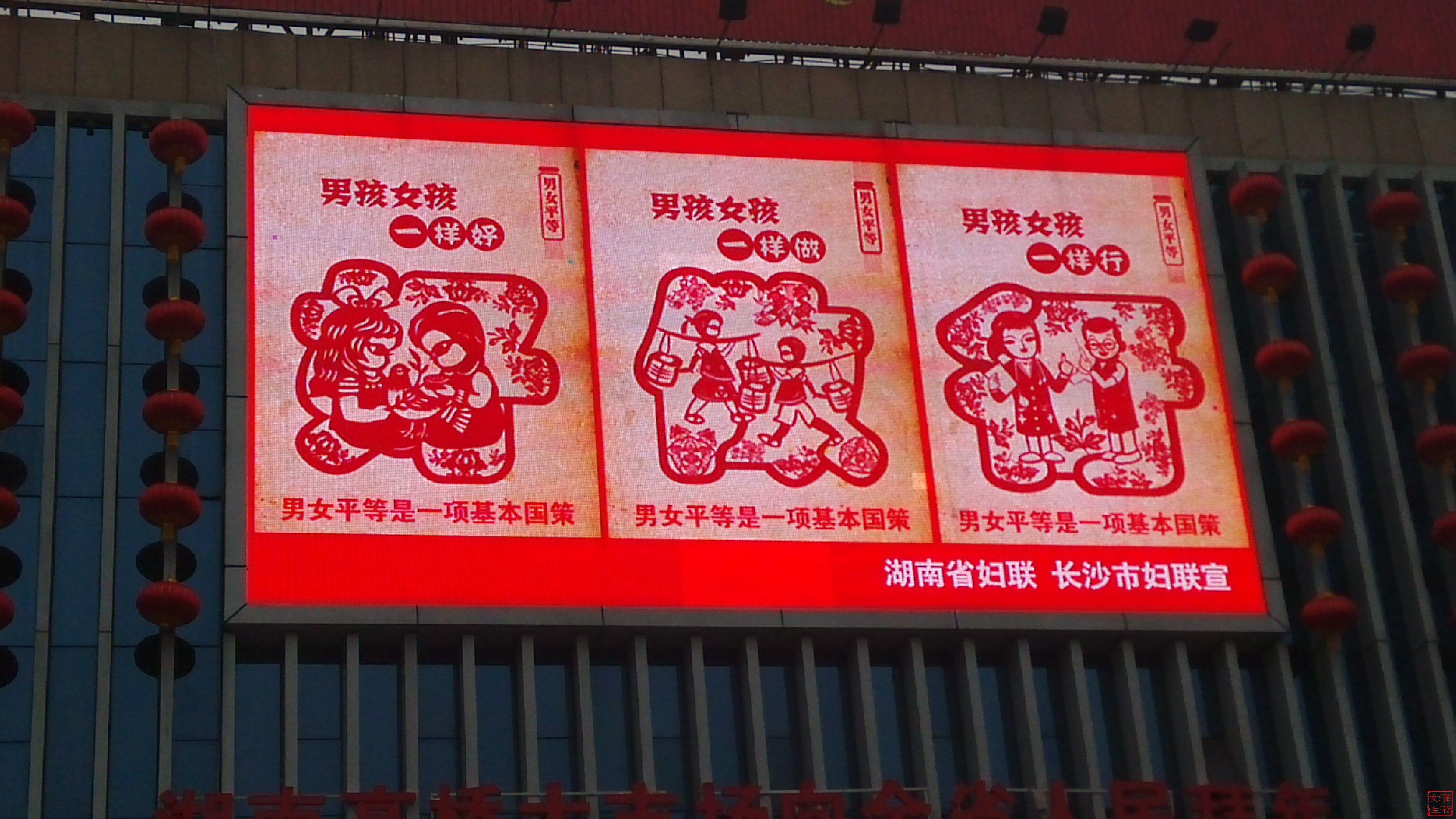 为纪念第四次世界妇女大会召开20周年,我国正式提出男女平等基本国策20周年以及“三八”国际妇女节105周年,3月伊始,湖南省妇联在长沙黄花国际机场、高铁长沙南站、长沙地铁2号等交通枢纽,长沙市步行街中心广场、长沙市五一广场等14个人员密集的商圈地带,以及营盘路隧道等4个市内交通隧道口广泛开展了男女平等基本国策户外宣传。