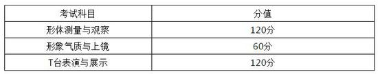 身高与形象 50 分、专业技能 250 分(演唱 40 分、台词 70 分、形体展示 40 分、表演 100 分),满分 300 分。