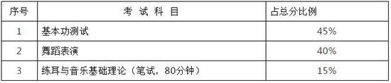 舞蹈类专业考试成绩总分为 300 分,具体考试科目及分值: