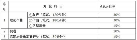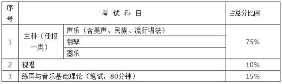 音乐类专业考试成绩总分为 300 分,具体考试科目根据主科所报类别的不同,分为两种类型: