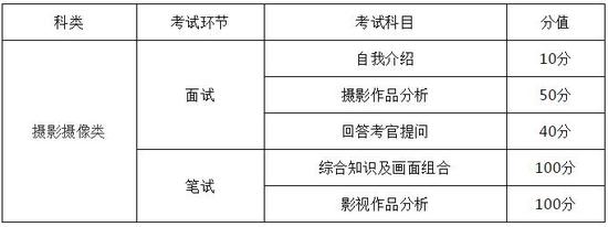 考生必须凭第二代居民身份证以及《专业考试证》在规定的时间和地点参加专业考试。考试时间安排:①面试考试时间由考生在 12 月 1 日至 3 日期间登录 “ 报名缴费指定系统 ” 进行预约,未预约考生的考试时间由系统在未约满的考试单元时间中随机编排。②笔试时间统一为 12 月 13 日上午 9:30~11:30(综合知识及画面组合),下午 14:30~16:30(影视作品分析);“ 综合知识及画面组合 ” 科目开考 15 分钟(13 日上午 9 ∶ 45)后,考生不得进入考室;“ 影视作品分析 ” 科目开考前 15 分钟(13 日下午 14 ∶ 15)后,考生不得进入考室。考生须在 12 月 12 日下午 17 点前往考试地点熟悉笔试考场。