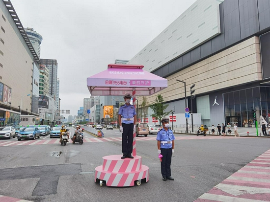 爱在长沙,为你比心!长沙定制粉红交警执勤岗