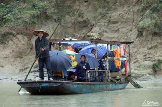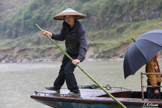 湖南花垣一村孩子靠小船渡河去贵州上学