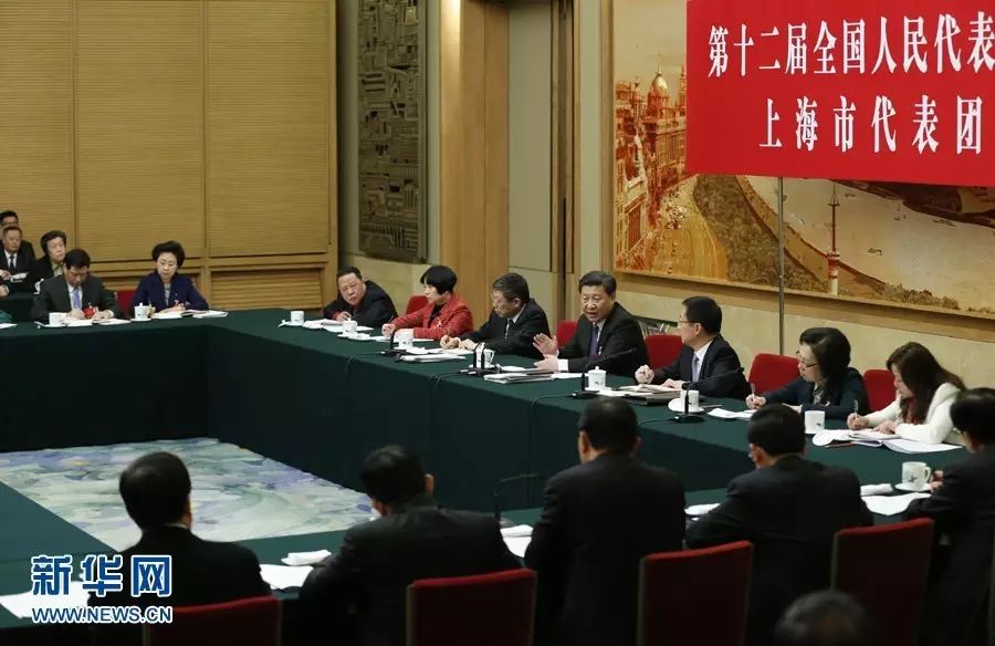 图为: 2016年3月5日,中共中央总书记、国家主席、中央军委主席习近平参加十二届全国人大四次会议上海代表团的审议。