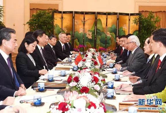 习近平指出,很高兴在中新建交25周年之际对新加坡进行国事访问。中新建交25年来,双方开展了领域广泛、层次多样、务实创新的全方位合作。当前,中新关系正处在继往开来的重要机遇期。我们愿同新方共同努力,开创中新关系新未来。一是做好顶层设计,保持高层密切交往,加强战略沟通,继续发挥领导人引领作用,把握好两国关系发展方向。二是与时俱进开拓务实合作,扎实推进以重庆为运营中心的中新第三个政府间合作项目,将其建设成为中新互利合作新的示范项目。继续建设好苏州工业园区和天津生态城两大重点合作项目。保持双边经贸合作的上升势头。双方还可以积极探讨两国企业结合“一带一路”倡议开拓在第三方市场合作模式,并在这一框架内挖掘金融合作潜力。中方也愿同新方加强在科技环保、教育人文、社会治理等各领域交流合作,推动两国务实合作向纵深发展。三是加强在地区和国际事务中的协调和配合。新加坡今年接任中国-东盟关系协调国。中方愿同新方一道,聚焦发展合作,共同构建中国-东盟命运共同体。中新双方可以加强在联合国、亚太经合组织等国际和地区机制中的沟通协调。