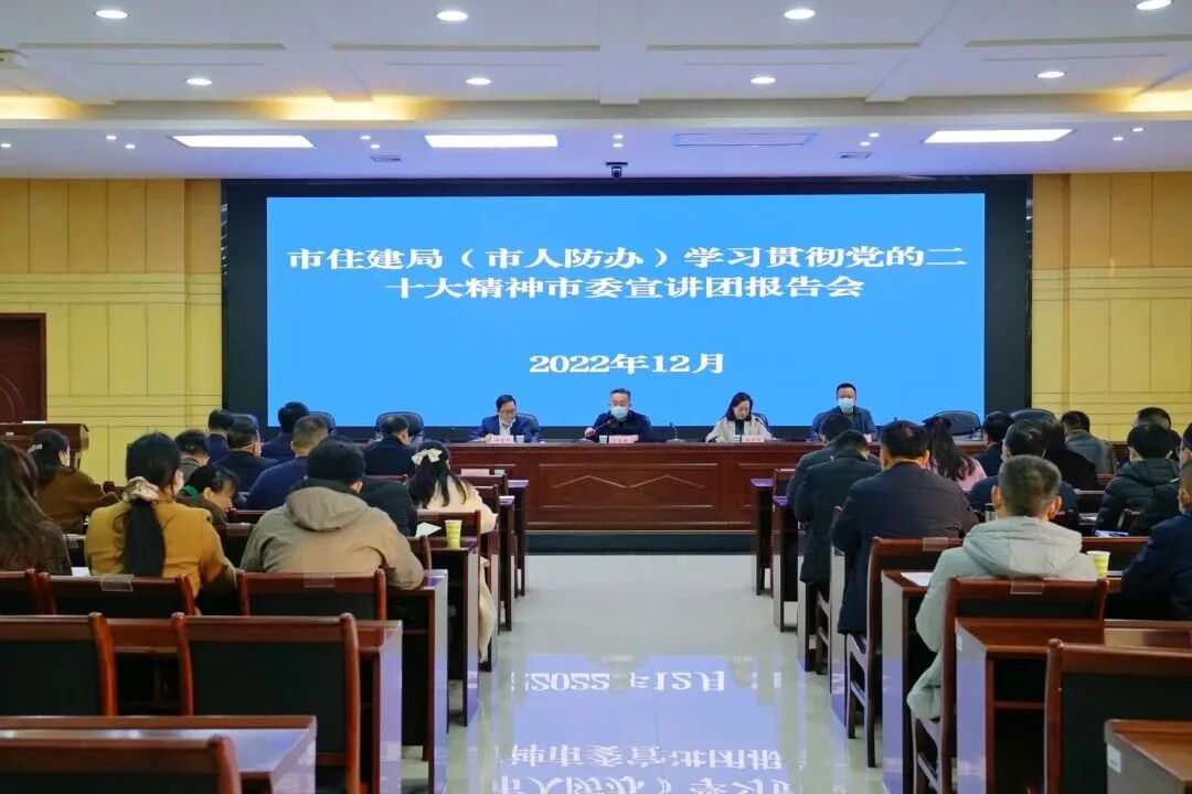 12月8日上午,常德市委宣讲团成员,市妇联党组书记、主席向艳艳在市住建局(市人防办)宣讲党的二十大精神,市住建局(市人防办)党组书记、局长彭家明主持会议。市住建局(人防办)机关全体干部、局属处级单位相关分管领导,局属正科级单位主要负责人参会。