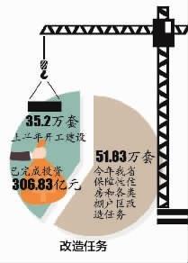 截 至今年6月底,已完成投资306.83亿元,下达中央和省级专项补助资金194.7亿元;开工建设35.2万套,开工率67.9%,位居全国第九位,中部 六省第一。其中,公共租赁住房14.25万套、开工率70.9%,城市棚改18.94万套、开工率68.2%,国有工矿棚改0.44万套、开工率 32.2%,垦区棚改1.57万套、开工率60.7%。