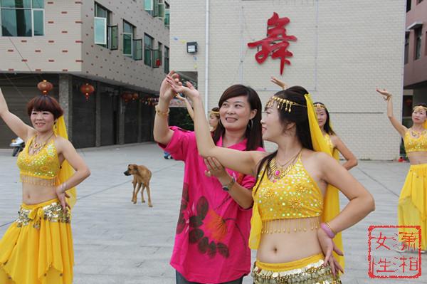 图为六都寨镇农村妇女在专业老师的指导下学习舞蹈表演