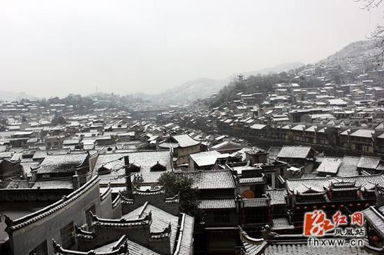 红网凤凰站3月10日讯(分站记者 龙磐)阳春三月,本是春暖花开的季节,受到冷空气的影响,凤凰古城突降大雪。雪中的凤凰古城银装素裹,分外妖娆,景色十分迷人。