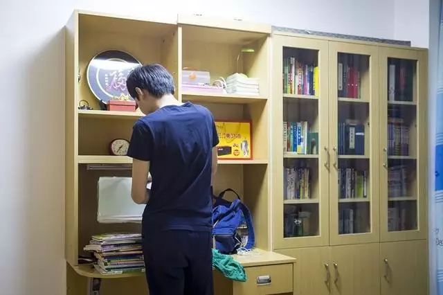 小智(化名)在家整理从学校带回来的课本,目前他还不能回校上课。