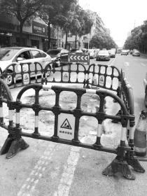 7月19日凌晨路面塌陷图。 市政微博图 7月21日,记者来到塌陷处,塌陷已进行了回填,周围设置了护栏。 本报记者王婕摄