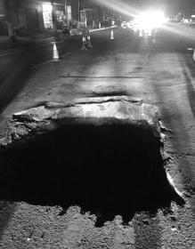 株洲一路面塌陷 因车速快一辆车左前轮崩掉