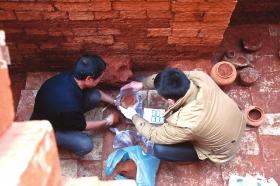 昨日,记者赶到了古墓挖掘的现场。现场,工作人员正在用蓝色的塑料布将墓葬内的物品细致地打包,然后装到大纸盒内。同时,工作人员绘制了物品被发掘出来时的所在位置图,并在墓葬相应位置上做好了标记,随后,所有挖掘出来的物品被统一运走。这意味着墓葬挖掘工作初战告捷,墓葬内的各谜题也将逐渐浮出水面。