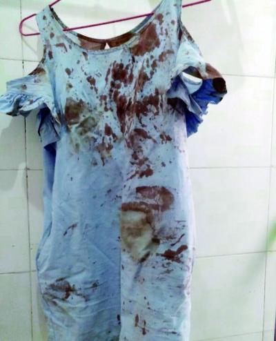 女子在网上发布被打伤后的照片,当时所穿裙子上血迹斑斑 网络截图