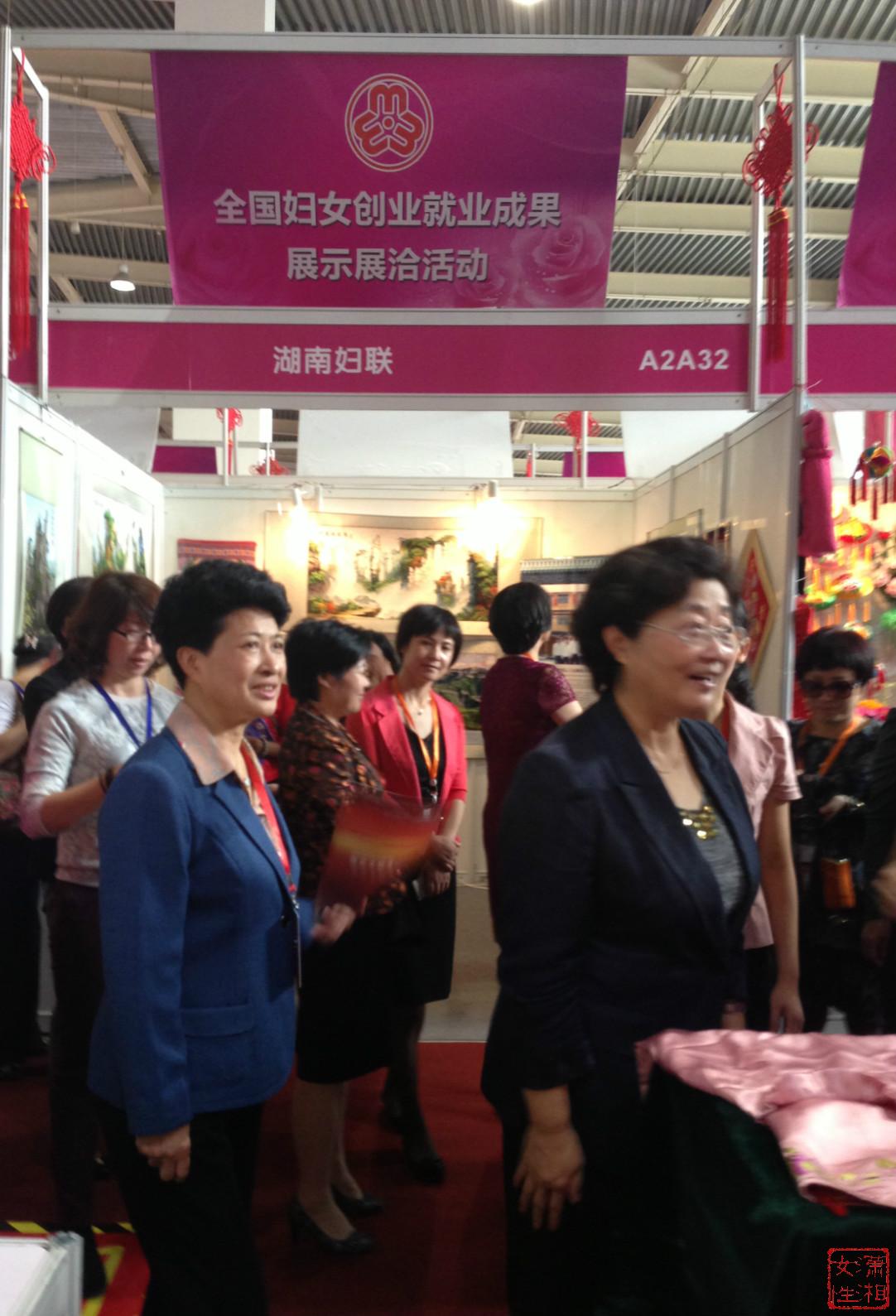 全国妇联副主席、书记处书记崔郁,全国妇女工编织协会执行副会长吕福玲莅临湖南展位参观指导