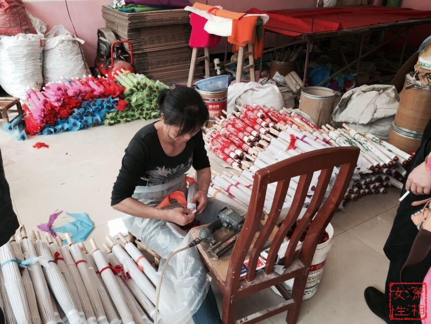 手工制作的油纸伞——旅游工艺伞,是湘潭县石鼓镇的地方名产,距今有600多年历史。市妇联一行先后深入石鼓镇部分农户家及伞厂,与妇女手工业者话家常、问现状、谈发展,实地走访察看油纸伞制作及生产现状,详细了解了当地手工编织业发现现状及存在的困难和问题。在石鼓竹缘工艺伞厂,调研组了解到,石鼓镇的油纸伞加工以家庭为单位分散加工再集中,该厂全年加工旅游伞约30万把,企业总产值达120万元,吸引100余劳动力就业,其中绝大部分为本地农村闲置劳动力,以中老年人及妇女居多,为农村留守妇女提供了很好的就业机会。