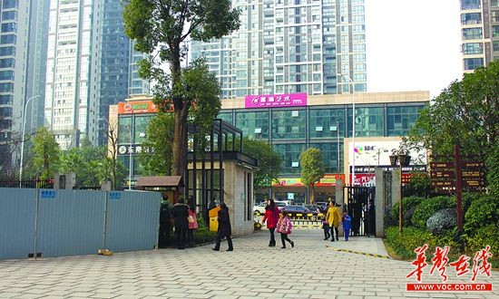 12月30日下午,长沙融科东南海小区北门的一个出入口已经被围挡围了起来,不时有小学生从该门进入小区。记者 丁鹏志 摄