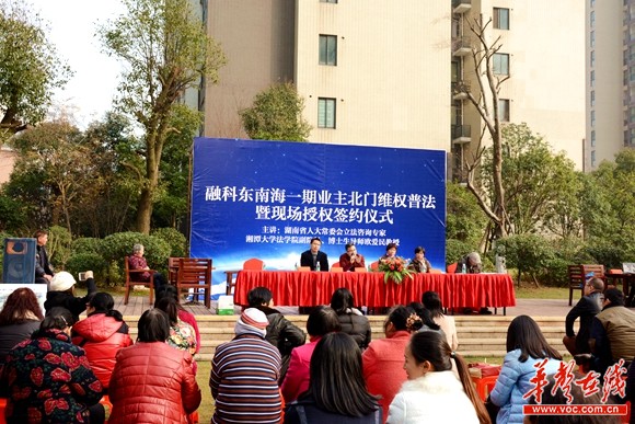 华声在线—三湘都市报12月30日讯 今日下午,在长沙市融科东南海小区内,一场别开生面的普法讲座在此举行。因质疑开发商“偷”改规划侵害业主权益,业主们特请来了法学专家、律师在小区内上了一堂维权普法公开课,告诉大家如何依法维权。现场业主介绍,“小区内以前是‘人车分流’模式,如今开发商在北门人行主出入口处建了一条机动车道,对面就是中小学校,这是每天的必经之路,存在很大安全隐患。”当日下午,该小区业主还现场进行了授权签约仪式,欲起诉长沙规划部门和开发商。