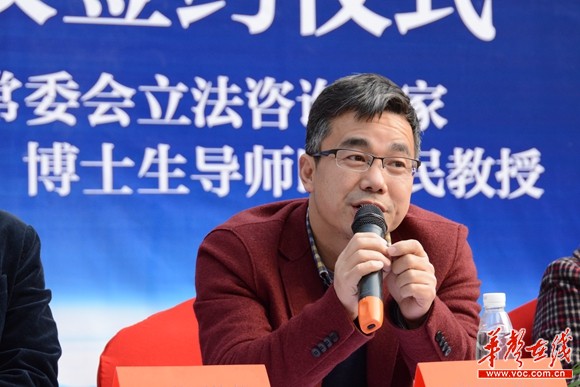 图为湘潭大学法学院副院长欧爱民教授正在做维权普法讲解。记者 龙腾 摄