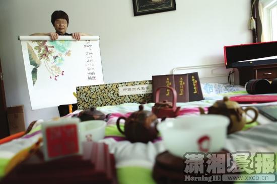在郝女士的家中,记者看到各种包装的字画和藏品,郝女士将准备拍卖的两幅书画和一对玉碗小心翼翼地摆放在床上。