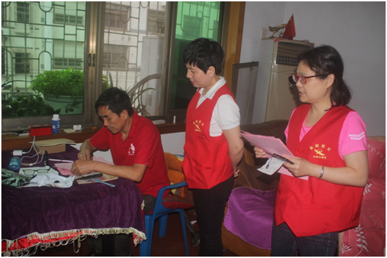 在困难帮扶走访慰问活动中,党员志愿者分为五组走访社区贫困户,周红玲主席来到14岁女童家,父亲身患疾病,母亲失踪多年,现由年迈的爷爷奶奶抚养,在与爷爷的交谈中,爷爷两次留下心酸的眼泪,红玲主席鼓励他们树立信心,克服困难,努力生活,并送去慰问金。