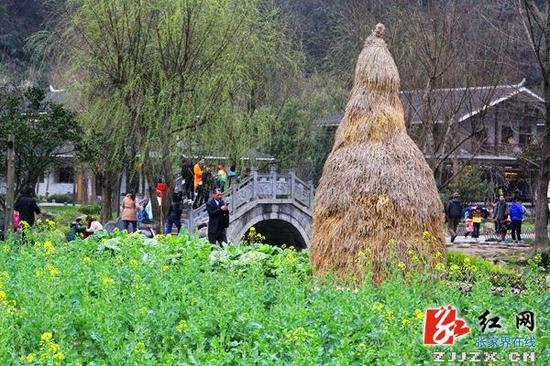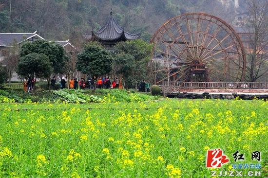 张家界黄龙洞广场在建设过程中,保留了原有的30亩农田及其耕作方式,不仅向海内外游客巧妙展示了张家界传统的农耕田园文化,也让广场成为大众 观赏油菜花的绝妙去处。景区园林工人介绍,受气温迅速回升影响,今年油菜花开放时间比去年提前了约一星期,“三八”妇女节期间所有油菜花都将盛开,广场其 他培植的樱花、玉兰花、桃花也将竞相开放、争奇斗艳。