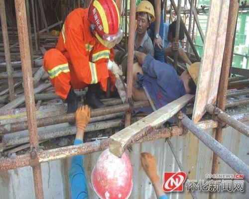 怀化新闻网讯 6 月17 日,怀化城区某施工工地一民工跌落,被钢筋插入体内,情况十分紧急。鹤城消防大队接到报警后,立即出动1 台抢险救援车7 名官兵赶往现场,经过半个小时的紧张施救,成功将伤者救出并送往医院救治。