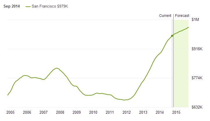 从图中可以看出,近十年来,旧金山房价一直较为稳定,在金融危机爆发的2008年甚至出现了一个小高峰,此后几年趋于平缓,自2013年开始房价又开始上涨,且涨势迅猛。