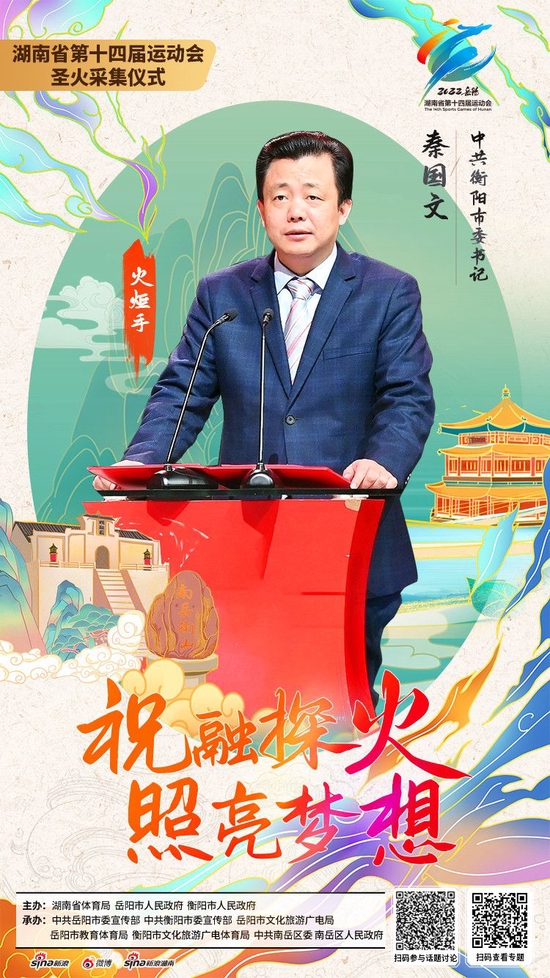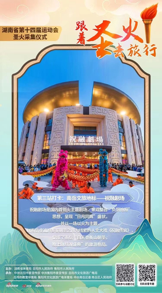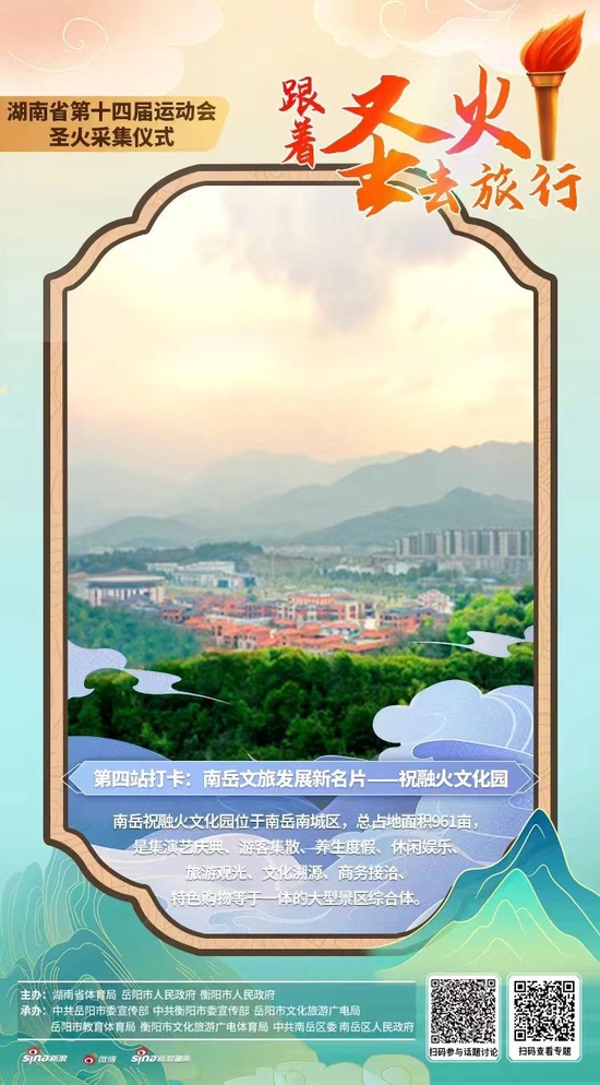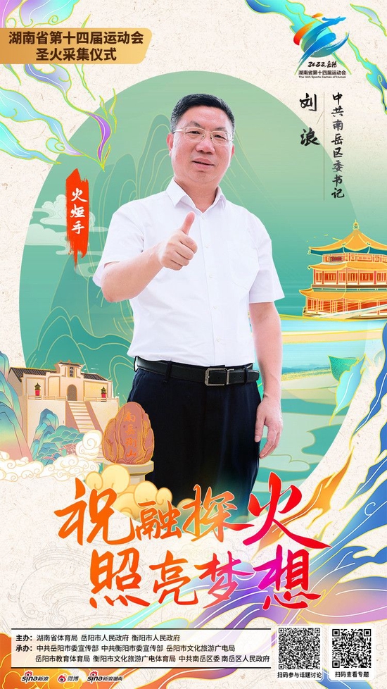 “火神祝融,不仅是火的符号,更是心的期盼,永远激励后人筚路蓝缕、勇往直前。”南岳区委书记刘浪表示,7月19日上午,让我们相约南岳衡山祝融之巅,看文明之光照彻三湘,祝融圣火点亮四方!