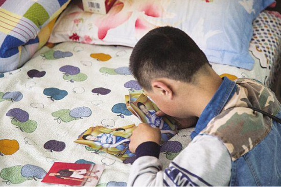 国国茫然的看着父亲与哥哥的相片,一个已经离世,一个未曾谋面(记者汪成 实习生关振烁 摄)未来