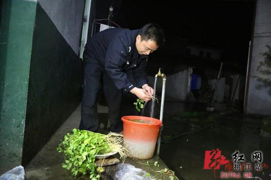年轻的小伙子是1992年出生的90后,帮忙洗菜。夜里下雨了,水有点凉。