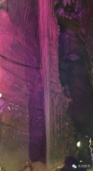 [湾井镇赛景岩溶洞 “定海神针”石柱(暂命名)]长石柱高5.7m,宽1.4m,厚7cm,从上至下单向生长,考察组表示,就现有资料来看,国内尚未发现此种类型的洞穴沉积物。