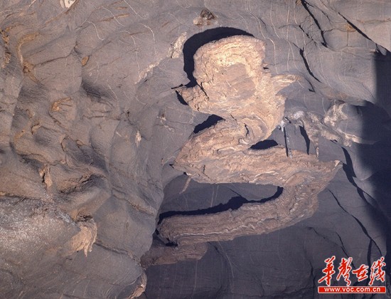 湘西龙山一溶洞内惊现龙形石 长达30米颜色金黄