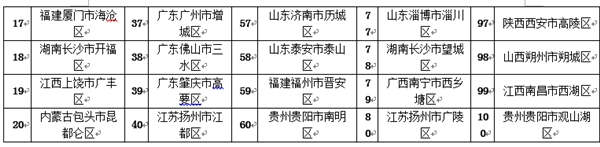 湖南省长沙县、辽宁省海城市继续稳居中部地区第一名和东北部地区第一名,西部地区第一名则是四川的双流县。