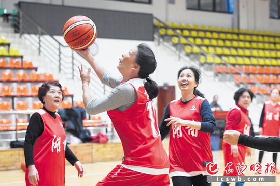 因为都有专业底子傍身,所以这群平均年龄近60岁的奶奶在球场上仍是身手敏捷。记者在训练现场看到她们热身时练习跑篮,连续5个队员均稳稳命中,进球没有断过。