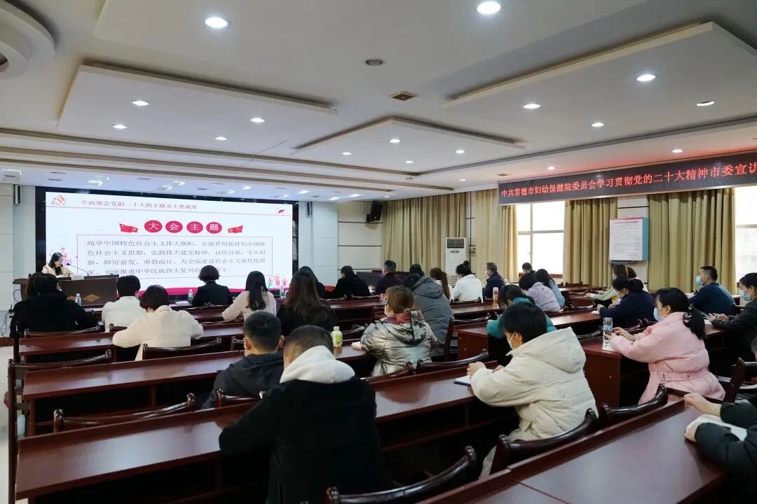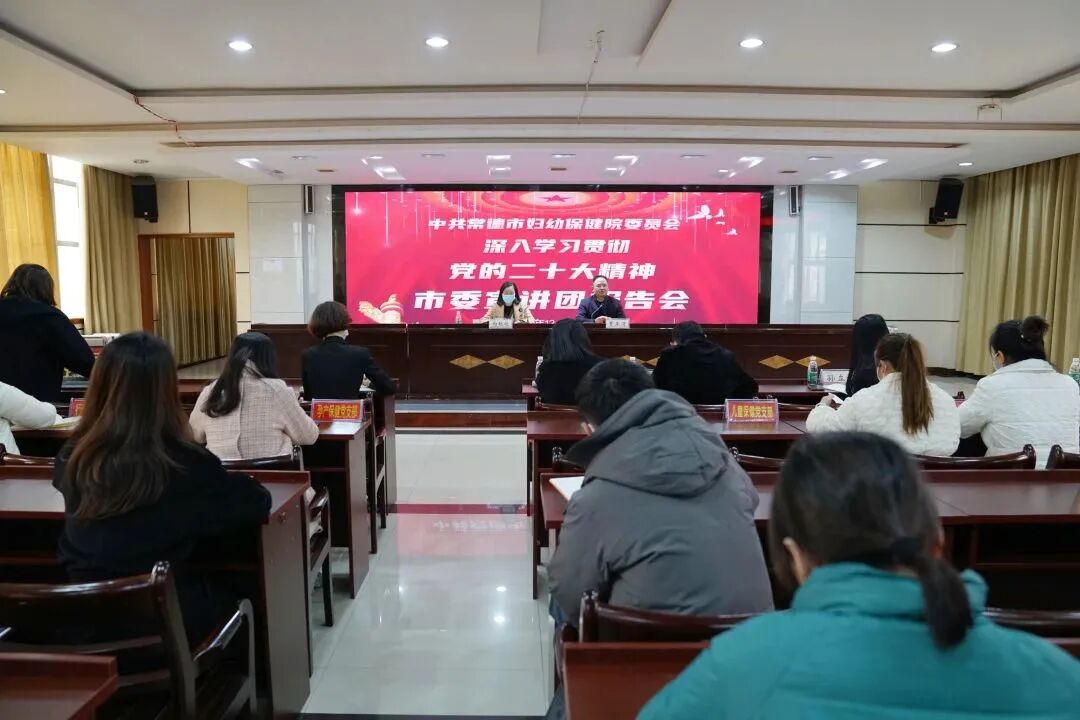 12月9日下午,常德市委宣讲团成员,市妇联党组书记、主席向艳艳在市妇幼保健院宣讲党的二十大精神,市妇幼保健院党委书记曹正清主持报告会,全体院领导、二层骨干、各党支部党员、各民主党派代表参加。