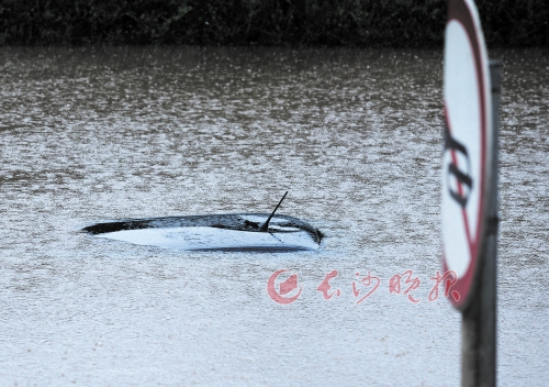 强降水袭击长沙亚大路积水严重 小车被淹仅剩车顶(图)