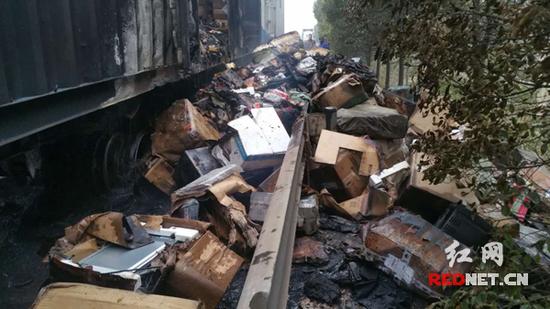 京港澳高速临湘段货车起火 近800件快递被烧毁
