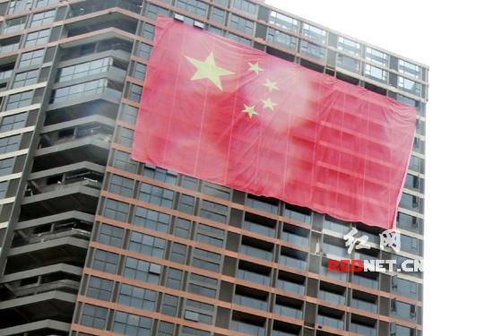 长沙“百米上空”悬挂重500斤大国旗(图)