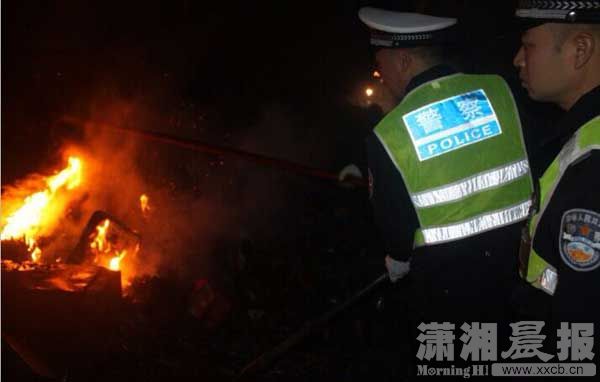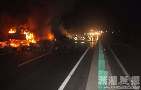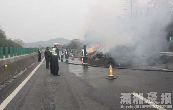 郴州高速一货车行驶中自燃 20吨家电被烧毁