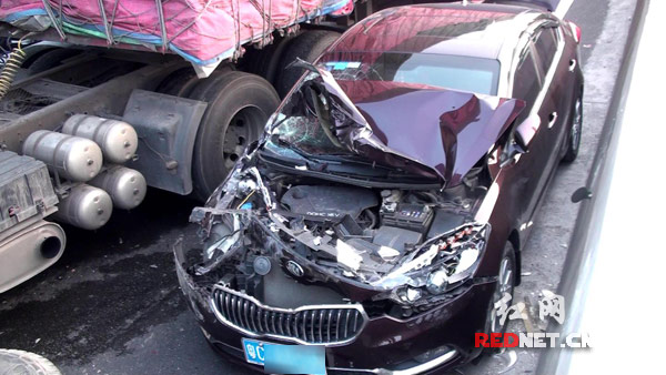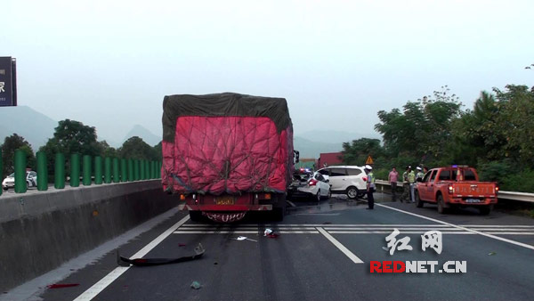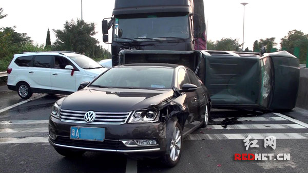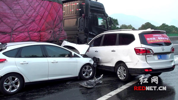 京港澳高速发生六车追尾事故 6台车拧在一块无法挪动
