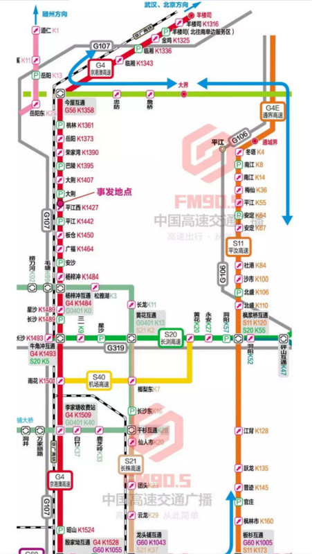 3、对杨梓冲、广福、开慧收费站实行交通管制,车辆只出不进,北上车辆在开慧、广福收费站分流至g107国道通行。